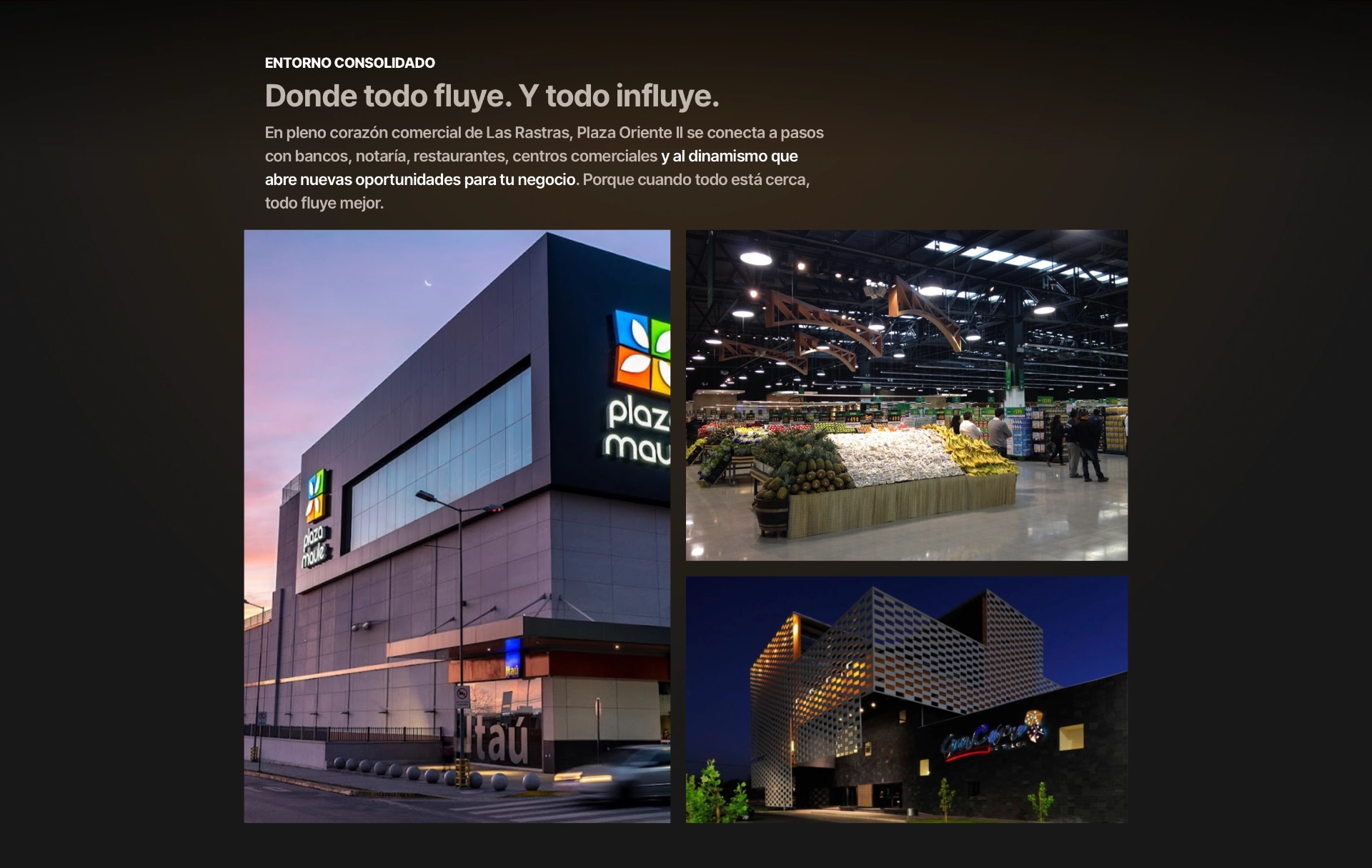 Plaza Oriente II es un edificio de oficinas y espacios comerciales ubicado en uno de los sectores de mayor actividad profesional y comercial de Talca. Su propuesta se dirige a personas profesionales y emprendedoras con una vida cotidiana exigente, para quienes la cercanía a comercio, servicios, colegios y espacios de entretención es una ventaja concreta en su día a día.