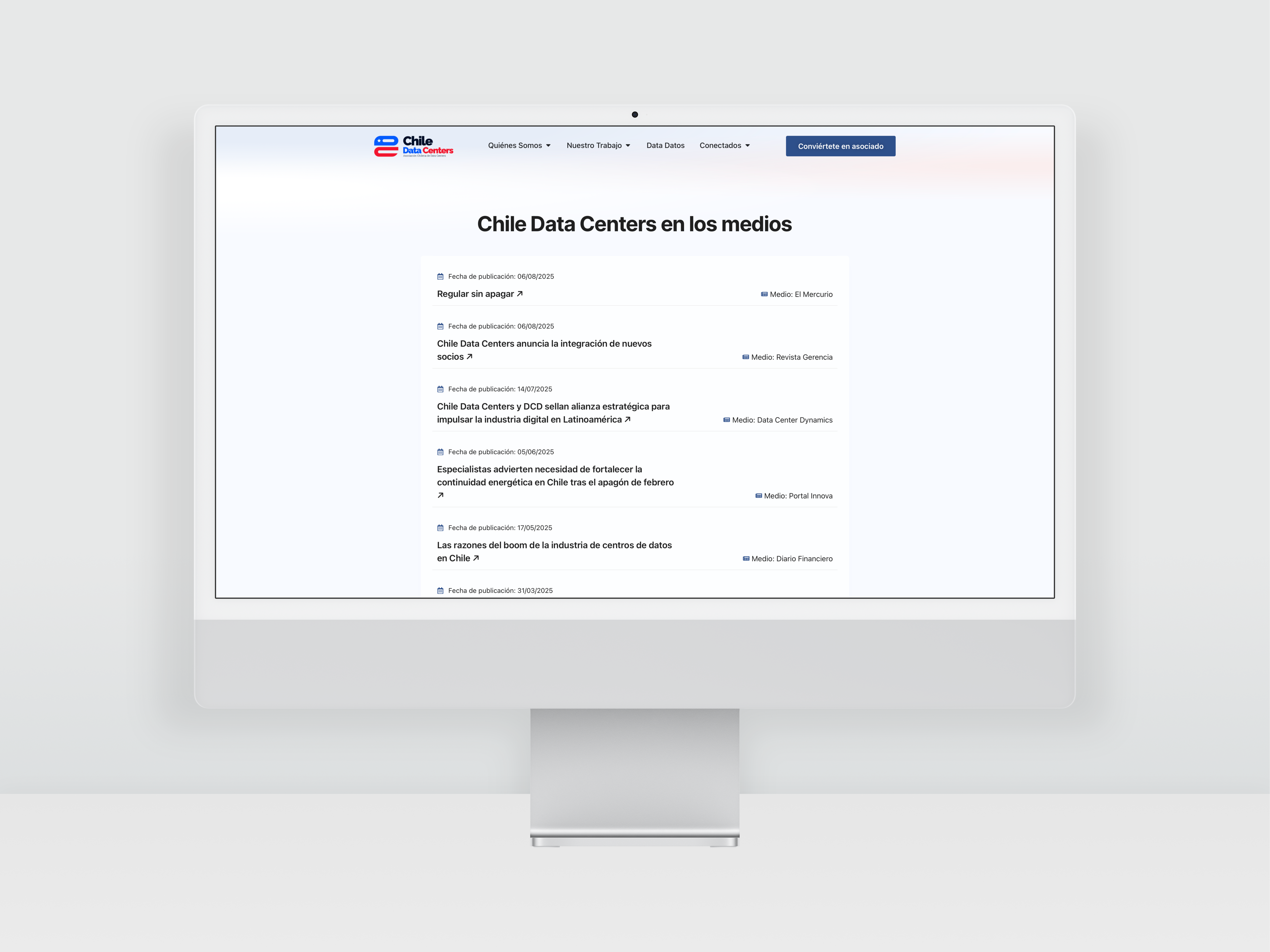 La Asociación Chilena de Data Centers necesitaba que su sitio web representara con claridad qué es, qué hace y cuál es su aporte al ecosistema digital del país, visibilizando el rol de la institución para facilitar su proyección hacia nuevos socios.